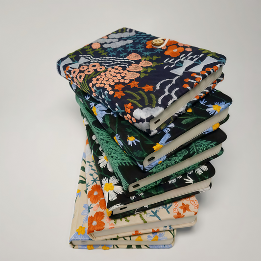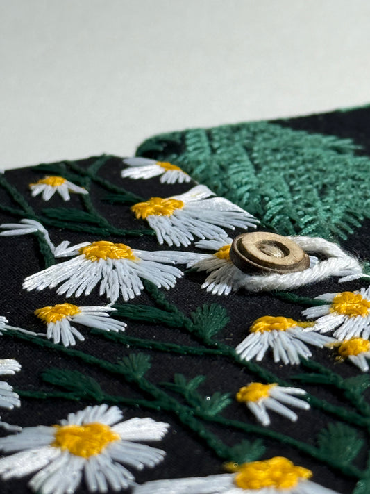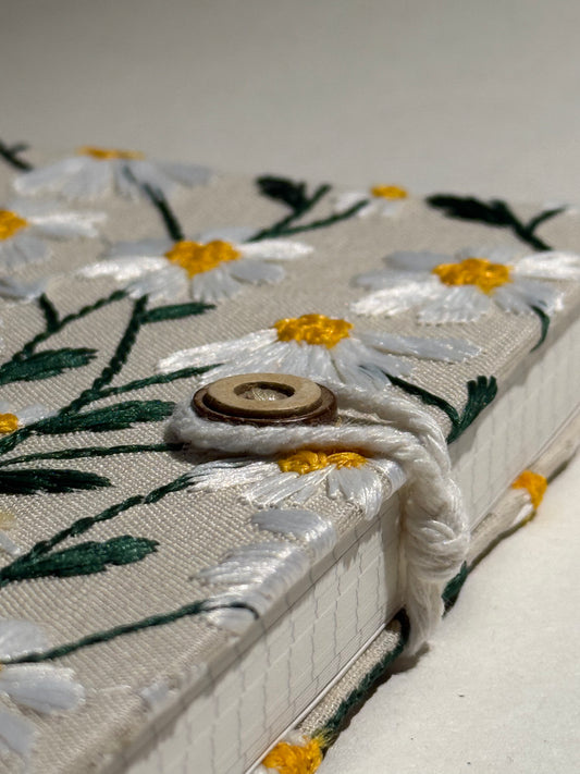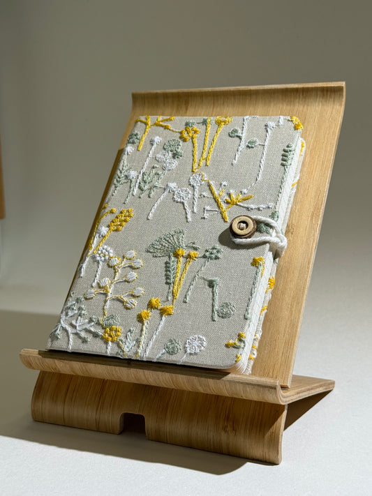 A6 Embroidered Notebook - Flowers on Natural Canvas
