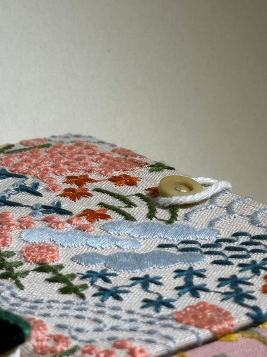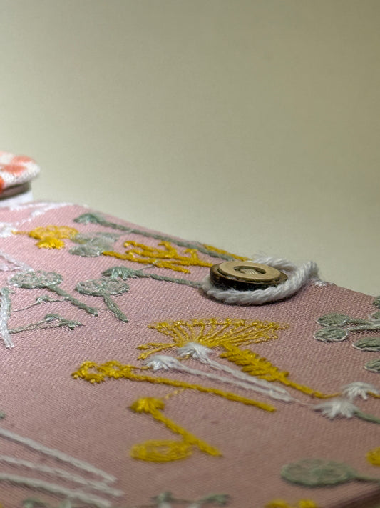 A6 Embroidered Notebook - Flowers on Pink Canvas